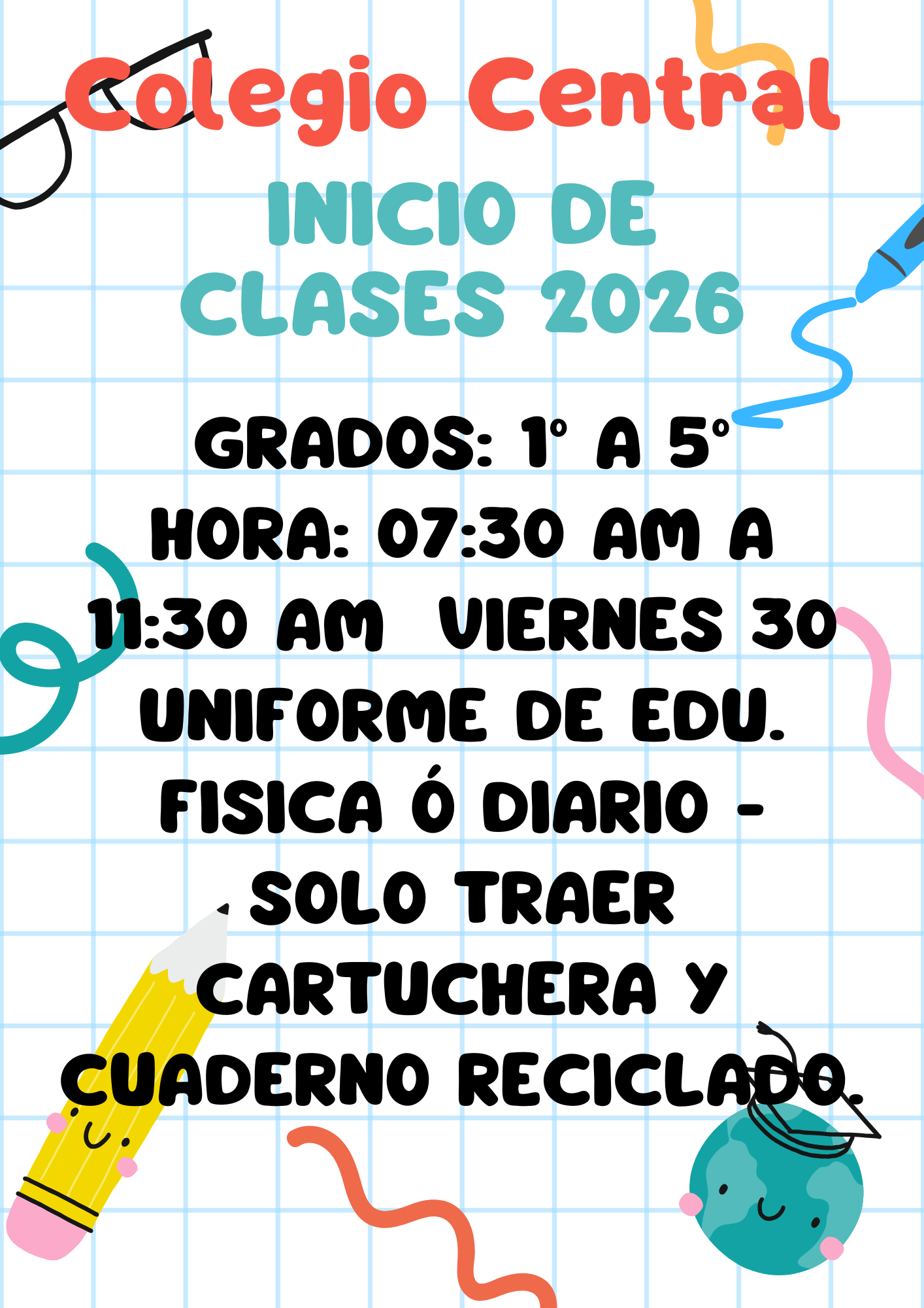 Bienvenidos a este nuevo año escolar 2026 Estamos felices de tenerlos nuevamente en nuestra institución, un nuevo ciclo lleno de retos, aventuras y aprendizaje....