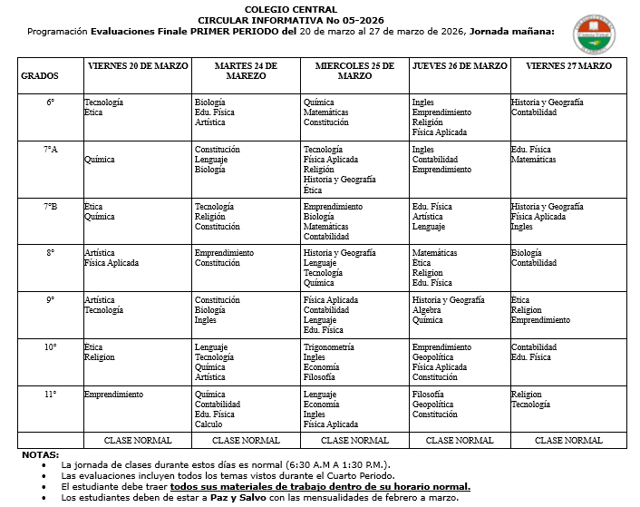 Semana de Evaluaciones Finales tercer Periodo Jornada Mañana